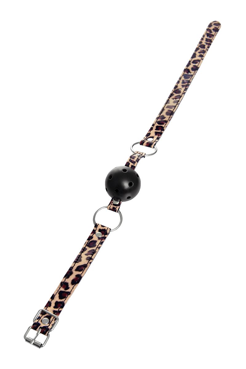 Искусство красноречивого взгляда – все что остается, ведь невозможно произнести ни слова в этом кляпе – только слушать и подчиняться. Можно скрежетать зубами по пластику, но вдруг Доминант рассердится и накажет еще сильнее? Специальные отверстия для воздуха делают ношение кляпа безопасным и комфортным. Удачное сочетание леопардовой расцветки и металлической фурнитуры делает образ сексуальным и загадочным, добавляя в образ элемент хищника. Ремешок фиксируется на голове металлической пряжкой и подходит для любого размера головы. Игра в послушную зверюшку или непокорного хищника…. Уже представили? Дополните образ аксессуарами той же расцветки и наслаждайтесь обществом друг друга. Диаметр шарика - 4,5 см.