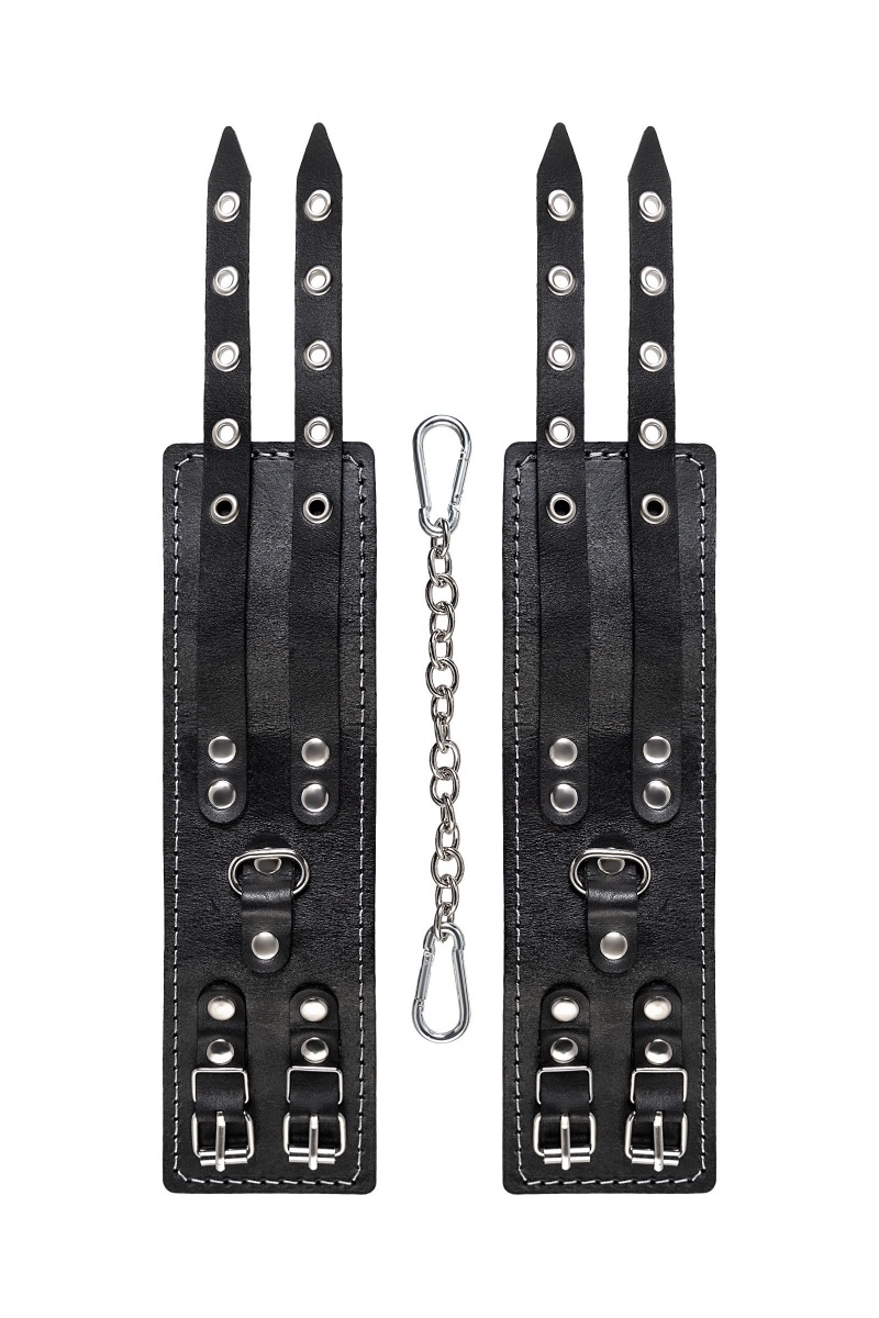 Эти кожаные оковы с двумя ремнями и красной подкладкой могут стать стильным аксессуаром, а могут послужить вашим целям по своему прямому назначению. Частичное обездвиживание и невозможность двигать руками или ногами дают вам полную власть над партнером – взрослые игры для взрослых. Наличие двух колец и карабинов, соединенных между собой металлической цепочкой, позволяет использовать изделие как раздельно – аксессуар-манжеты, так и как оковы для фиксации. К широким металлическим кольцам также можно присоединить и другие аксессуары при помощи карабинов. Благодаря универсальному размеру оковы могут использоваться и мужчинами, и женщинами. Размер легко регулируется с помощью металлических пряжек, органично вписывающихся в общий стиль. Длина манжет - 20 см, ширина - 7 см. Длина сцепки - 13 см.