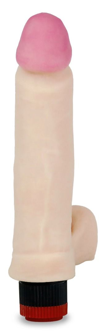 Реалистичный вибратор во всех отношениях. Сгибается до 60%, эластичный. Нежная, но в то же время упругая мошонка. Мягкая головка, залитая гелем. Пищевая краска на головке, которая смывается после первого использования. Это показатель того, что изделие в первых руках. Встроенный вибромеханизм с регулятором интенсивности вибрации на самом изделии. Группа изделий с использованием технологии протезирования. Композитная структура с полужестким, эластичным каркасом и сверхмягким атравматичным покрытием из ультрасовременного материала неоскин. Диаметр головки - 3,9 см.